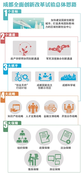 去年8月,中央決定四川依托成都、德陽、綿陽地區(qū)探索系統(tǒng)推進全面創(chuàng)新改革試驗的有效機制、模式和經(jīng)驗,開展先行先試。我市按照中央和省委決策部署,大力實施創(chuàng)新引領行動,將全面創(chuàng)新改革作為全市的“一號工程”,為改革試驗確定了“一個目標、兩個通道、三大抓手、四大戰(zhàn)略、五大保障”的總體思路,加快建設國家創(chuàng)新型城市、打造具有國際影響力的區(qū)域創(chuàng)新創(chuàng)業(yè)中心。