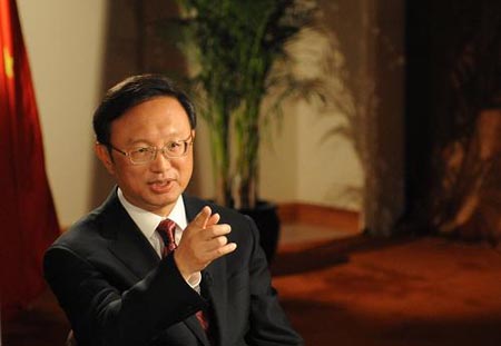 Chinese Foreign Minister Yang Jiechi during an interview with Xinhua. The photo was taken on Aug. 9, 2009.(Xinhua/Ding Lin)