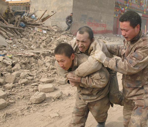 China's top political advisor Jia Qinglin visited quake survivors and rescuers during a trip to the quake-hit Yushu in northwest China's Qinghai Province on Monday.