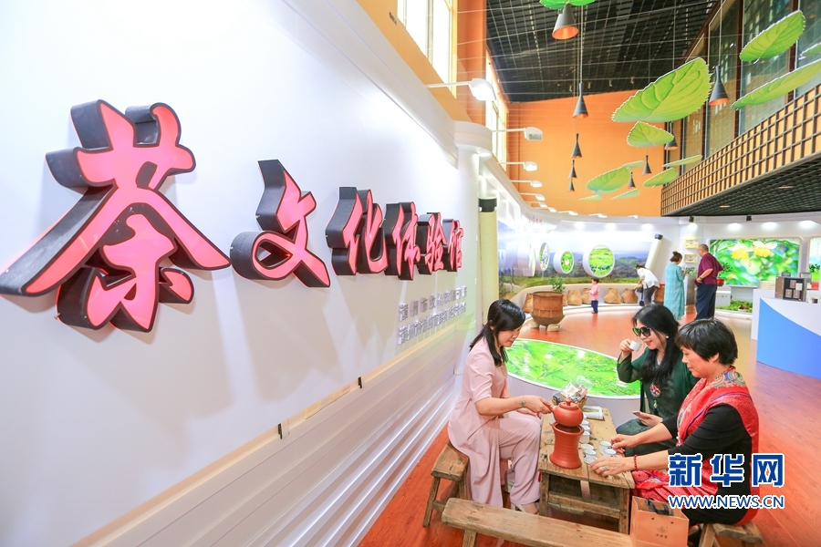 6月14日,在茶文化體驗(yàn)館,一名客商正在品茶。新華網(wǎng) 肖和勇 攝