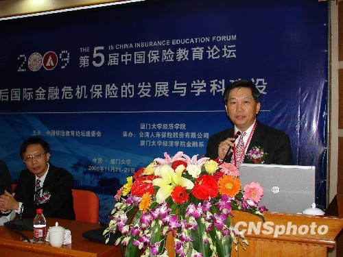 十一月二十一日,臺灣人壽保險股份有限公司董事長朱炳昱在廈門表示,在兩岸銀行、證券、保險等合作方面,保險領域領先一步,取得先行先試的先機,但壽險業面臨一些亟待解決的議題,盼望能早日透過ECFA(兩岸經濟合作框架協議)的簽署最終加以解決。當天,第五屆中國保險教育論壇在廈門舉辦。 中新社發 楊伏山 攝