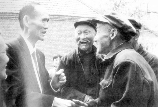 1991年5月高秉涵首次返鄉探親時,與故里長輩交談。