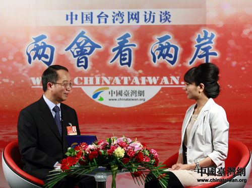 第十一屆全國人大代表、廈門市政協副主席陳耀中作客本網“兩會看兩岸”欄目。(中國臺灣網 普燕 攝)