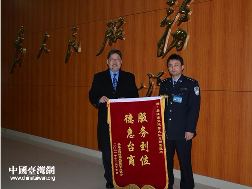 向吳江車(chē)管所呈送了錦旗。圖片來(lái)源:吳江市臺(tái)辦