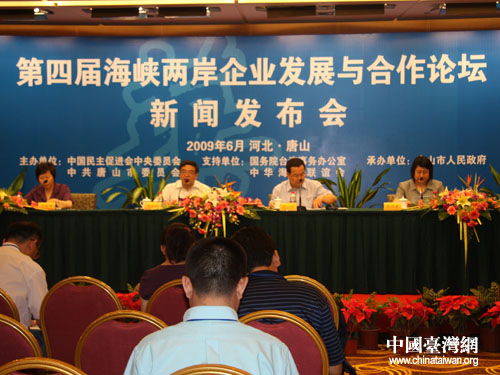 第四屆海峽兩岸企業發展與合作論壇組委會14日下午在唐山舉行新聞發布會, 介紹前三屆“海峽兩岸企業發展與合作論壇”的概況、本屆論壇的特點、籌備情況及日程安排。(中國臺灣網 肖燕 攝)