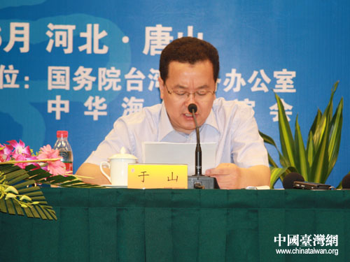 唐山市副市長于山介紹了本屆論壇的籌備情況及日程安排。(中國臺灣網 肖燕 攝)