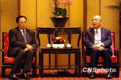 中新社臺(tái)北十二月十四日電 (記者 曾嘉 陳立宇)中國(guó)國(guó)民黨榮譽(yù)主席吳伯雄,十四日晚間在臺(tái)北圓山飯店會(huì)見了率團(tuán)前來(lái)臺(tái)灣參訪的中共中央委員、原河南省委書記徐光春。