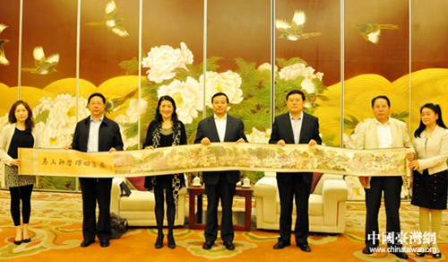 山東省臺辦主任倪明元、省商務廳廳長呂在模、青島海峽兩岸經濟文化交流協會會長徐東萌參加會見。(孫培君)