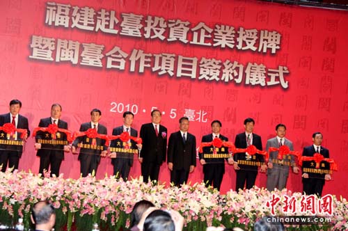 5月5日下午,“福建赴臺投資企業(yè)授牌暨閩臺合作項目簽約儀式”在臺北舉行,福建省長黃小晶、中國國民黨副主席曾永權(quán)為8家已獲兩岸行政部門核準的企業(yè)授牌,兩地企業(yè)代表還就數(shù)十個合作項目簽約。