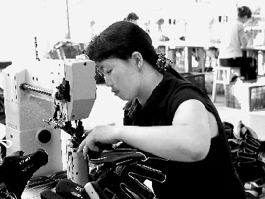 宏國(龍巖)運(yùn)動(dòng)用品有限公司員工正在趕制出口歐美的棒球手套。