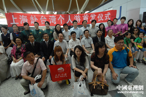 中國臺(tái)灣網(wǎng)6月28日上海消息 今天上午,上海首批赴臺(tái)個(gè)人游的25名旅客在上海浦東國際機(jī)場(chǎng)乘坐東航FM801航班于9:35飛往臺(tái)北。這批上海國旅等5家旅行社受理的游客登機(jī)前舉行了啟程儀式,上海市旅游局、市臺(tái)辦、旅行社、東方航空、長榮航空的代表前往送行。