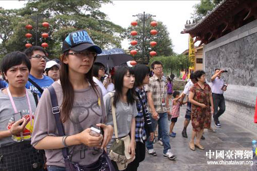 研習營的臺灣大學生們在清明上河園參觀。圖片來源:河南省臺辦