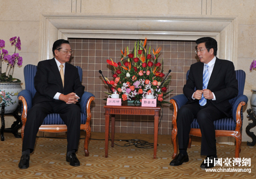 北京市長郭金龍會見中國國民黨副主席江丙坤一行。(北京市臺辦 王松 攝)