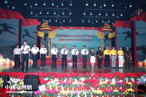 中國(guó)臺(tái)灣網(wǎng)7月31日壽光消息 日前,第四屆魯臺(tái)青少年武術(shù)文化交流活動(dòng)在山東省壽光市廣電大劇院盛大開幕。來自臺(tái)灣中華武術(shù)總會(huì)、臺(tái)北市國(guó)術(shù)會(huì)、中華北少林長(zhǎng)拳推展協(xié)會(huì)、中華國(guó)際南少林五祖拳協(xié)會(huì)、臺(tái)灣“中國(guó)文化大學(xué)”、臺(tái)北市士林區(qū)國(guó)術(shù)委員會(huì)、中華少林長(zhǎng)拳門的武術(shù)代表隊(duì)和來自濟(jì)南、南京、昌樂、壽光的武術(shù)代表隊(duì)共計(jì)500余名青少年武術(shù)愛好者參加開幕式。