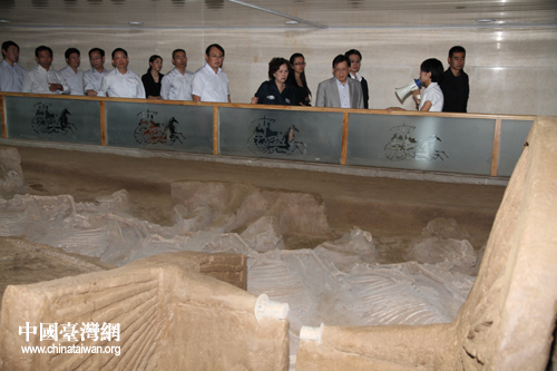 劉兆玄一行在臨淄中國(guó)古車館參觀。(圖片來(lái)源:淄博市臺(tái)辦)