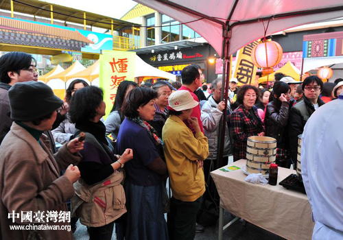 首屆“高雄市燈會藝術(shù)節(jié)暨北京特色周”,臺灣民眾排隊購買北京特色小吃。(資料圖片)