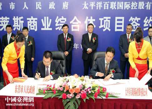 東營市人民政府、太平洋百聯國際控股有限公司奧特萊斯商業綜合體項目簽約儀式。(圖片來源:東營市臺辦)