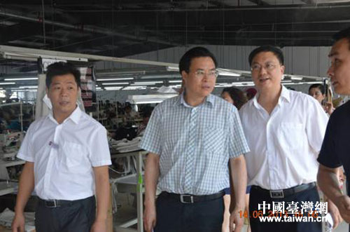 四川省臺(tái)辦副主任張軍(左二)一行在瀘州市合江好時(shí)紡織有限公司調(diào)研。圖片來(lái)源:瀘州市臺(tái)辦