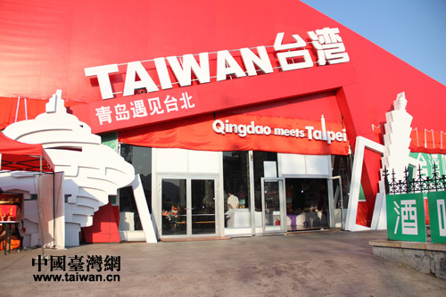 走進啤酒城南門向前約300米,在青島國際會展中心6號館南廣場遠遠望去,青島與臺北兩大城市的代表性地標“五月的風”和101大樓雕塑,與斜跨在展館門頭醒目的“臺灣”二字相輝映,闡釋“青島遇見臺北”的主題。