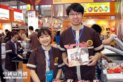 擬來濟南參展的臺灣海瑞貢丸董事長黃世凱和太太陳奕璇在貴陽展。(圖片來源:山東省臺辦)
