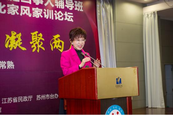 中國臺灣網12月23日蘇州訊 為更好服務兩岸婚姻家庭,搭建溝通互動平臺,傳承中華傳統文化家風家訓,由海峽兩岸婚姻家庭協會主辦,海峽兩岸婚姻家庭服務中心等承辦的第四期兩岸婚姻家庭當事人輔導班暨中華傳統文化家風家訓論壇于12月20日在常熟正式開班。中國國民黨前副主席洪秀柱出席開班儀式并致辭。
