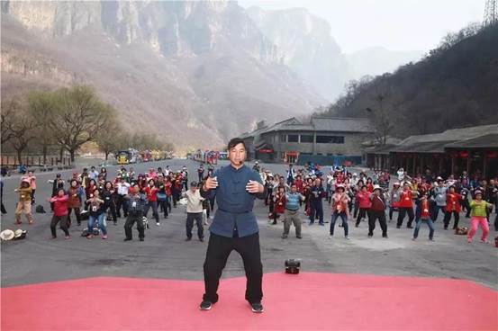 下午游覽潭瀑峽景點時,為了讓腿腳不便的游客少走路,旅游大巴直接開到了小寨溝廣場。陳式太極拳第十二代傳人張福旺專程從溫縣陳家溝趕到這里,他不僅帶領139名臺灣游客認真做熱身動作,還分享了太極拳重要功法——渾圓樁功,也就是俗稱“站樁”的練習技巧。