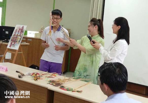 苗栗縣頭份中學的學生學習表演皮影戲。(圖片來源:濟南市臺辦)