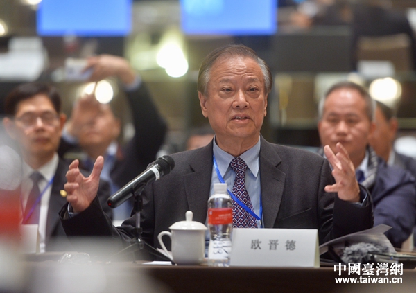 “5·12”地震臺灣救援隊隊長歐晉德在會上發言。(圖片來源:四川省臺辦)
