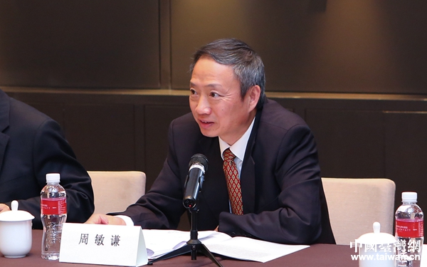 四川省臺辦主任周敏謙主持座談會。(圖片來源:四川省臺辦)