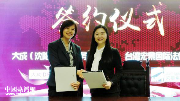 中國臺灣網(wǎng)5月29日沈陽訊 日前,為進一步打造沈陽國際化營商環(huán)境,促進沈臺兩地法律界的交流合作,服務(wù)在沈臺商發(fā)展,經(jīng)市臺辦溝通協(xié)調(diào),臺灣宏景國際法律事務(wù)所所長鄒純忻女士和北京大成律師事務(wù)所沈陽分所副主任李盾女士,分別代表兩家律師事務(wù)所在沈簽署戰(zhàn)略合作協(xié)議。沈陽市臺辦副主任朱軍和沈陽市仲裁辦副主任張進出席簽約儀式。