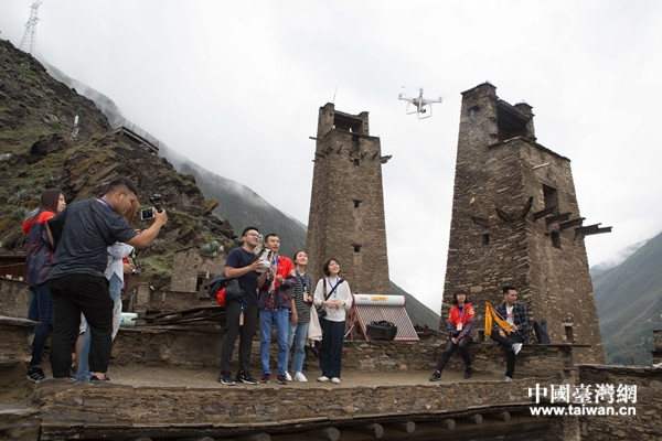 “最炫藏羌風(fēng)——第二屆臺(tái)灣傳媒大學(xué)生實(shí)習(xí)交流暨航拍體驗(yàn)活動(dòng)”走進(jìn)羌族建筑群落典型代表——桃坪羌寨。(圖片來(lái)源:四川省臺(tái)辦)