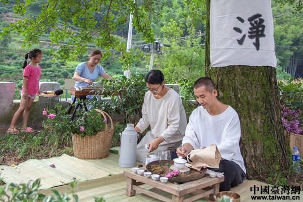 中國臺灣網(wǎng)8月2日桐城訊 7月26日清晨,安徽省桐城市唐灣鎮(zhèn)長嶺村和張樓村村民到銀杏樹下,在初發(fā)的晨曦中展開一場關(guān)于“茶”的心靈對話。桐城市首屆兩岸茶藝師茶道茶藝交流會在這里舉行。