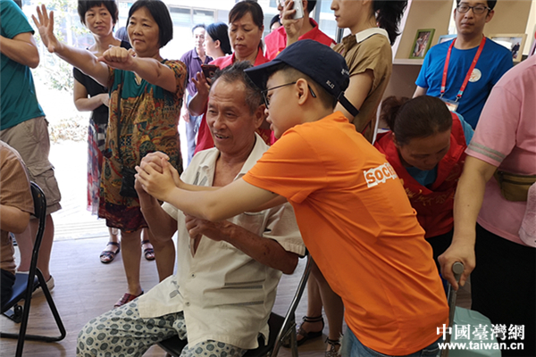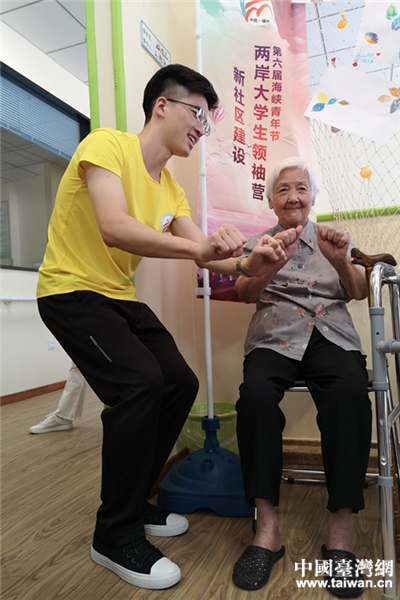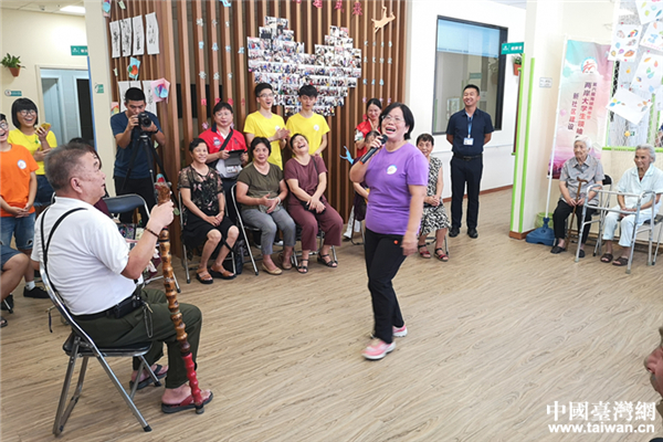 中國臺灣網8月9日福州訊 (記者 郜利敏 張露露)“阿公仔要煮咸啊,阿媽啊要煮淡,兩個人吵架弄破鍋,咦啊咦啊~真是趣味!”在福州市馬尾區羅星街道居家社區養老服務照料中心,社區老人何萬里領唱閩南歌謠《天黑黑》,來自臺灣高校社工系的學生跟著節奏打節拍。福臺兩地,年齡相差半世紀的兩代人其樂融融,共同唱響快樂歌聲。