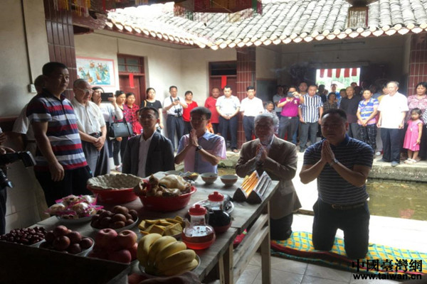 邱鏡淳一行行跪拜禮。(圖片來源:梅州市臺(tái)辦)