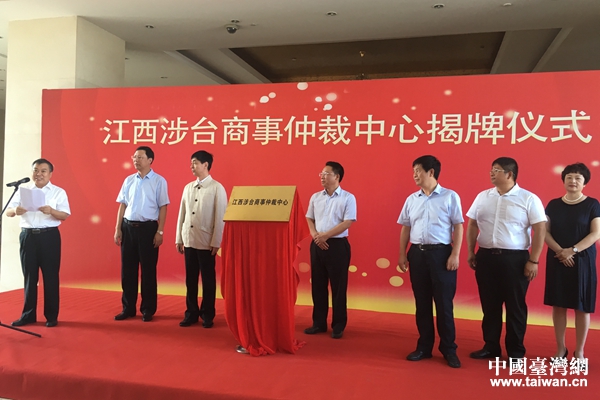 江西涉臺商事仲裁中心23日正式揭碑成立。(圖片來源:江西省臺辦)