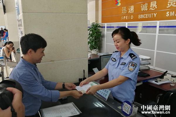 9月1日上午,在瀘州市公安江陽分局龍透關派出所內的業(yè)務辦理窗口,臺灣同胞趙均彧從民警手中接過了一張“港澳臺居民居住證領取憑證”,在20個工作日后,他將成功領取港澳臺居民居住證。“臺灣居民來往大陸通行證和大陸的居住證在證件號字碼上是不同的,所以,我們在選擇坐高鐵、飛機的時候,時常會遇到無法到站自助取票的困難,另外,辦理港澳臺居民居住證后,對我將來購買基金、保險、甚至購房都會有很大的幫助。”趙均彧說,他很早就開始關注港澳臺居民居住證的辦理情況,并主動與瀘州市臺辦進行聯(lián)系,希望自己第一時間就能辦理該證。