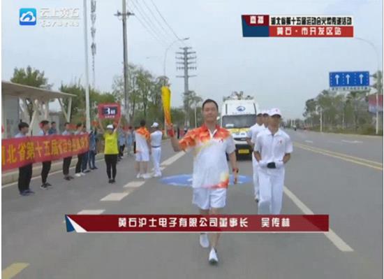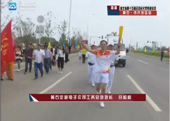 黃石滬士電子有限公司董事長吳傳林火炬?zhèn)鬟f。(圖片來自網(wǎng)絡(luò)視頻截圖)