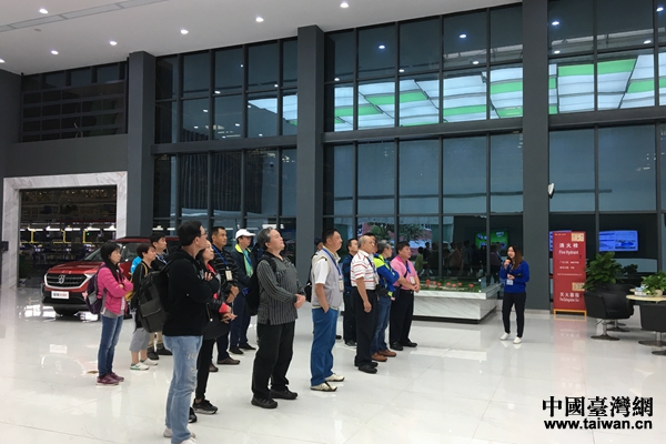 臺灣花蓮藍天退伍協(xié)會參觀上汽通用五菱汽車公司展廳。(圖片來源:玉林市臺辦)