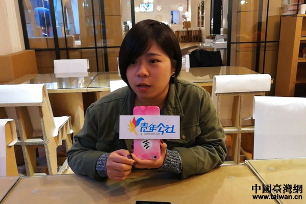 文創(chuàng)園內在手創(chuàng)聯盟就業(yè)的謝筱涓接受記者采訪。(中國臺灣網 趙蓉 攝)