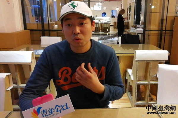 文創(chuàng)園內的創(chuàng)業(yè)者王子育在接受記者采訪。(中國臺灣網 趙蓉 攝)
