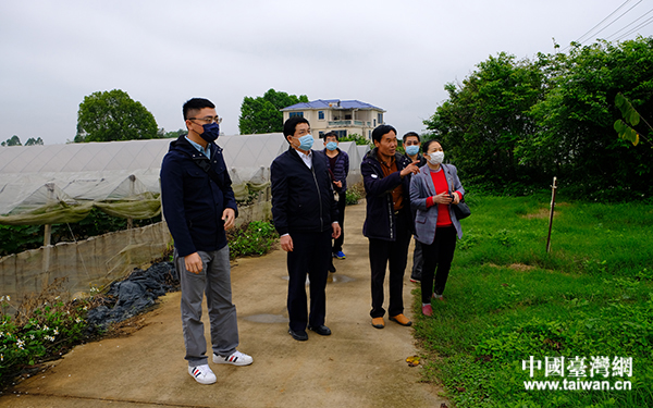廣西臺(tái)辦副主任趙紅明(左二)到南寧市金之都農(nóng)業(yè)科技有限公司走訪調(diào)研(中國(guó)臺(tái)灣網(wǎng) 發(fā))