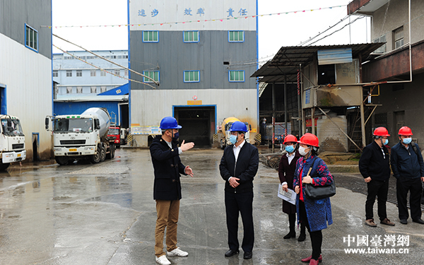 廣西臺(tái)辦副主任趙紅明(左二)到南寧市嘉泰混凝土有限公司調(diào)研(中國(guó)臺(tái)灣網(wǎng) 發(fā))