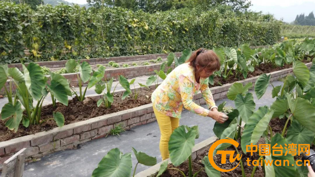 胡媽媽查看農(nóng)作物長(zhǎng)勢(shì)(圖片來(lái)源:四川省臺(tái)辦)