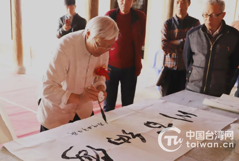 臺灣著名書畫家曹原彰為義賣活動開筆(圖片來源:福建省臺辦)