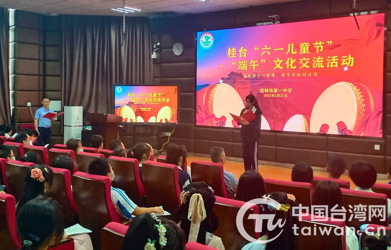 中國臺灣網5月31日訊 六一兒童節和端午節日近,廣西桂林市第一中學近日舉辦桂臺“六一兒童節”、“端午”文化交流活動,邀請該校臺灣學生和部分外校臺灣學生及其家長,與當地學生代表歡聚一堂,共慶節日,其樂融融。