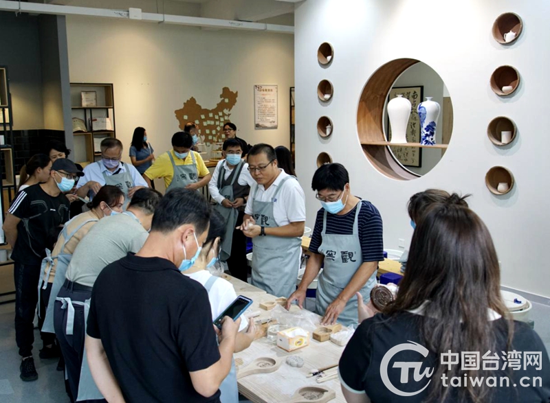 臺胞還來到天津市級非遺陳氏制瓷(手繪)制作技藝的傳承和保護單位——觀照軒,與兩位臺灣少數民族同胞連線,線上線下同頻共振,參觀觀窯瓷·名家扇津派藝術展和月餅模具展,共同感受中華傳統文化與經典藝術之魅力。臺胞們還沉浸式體驗,親手制作了一份永不過期的陶瓷月餅。