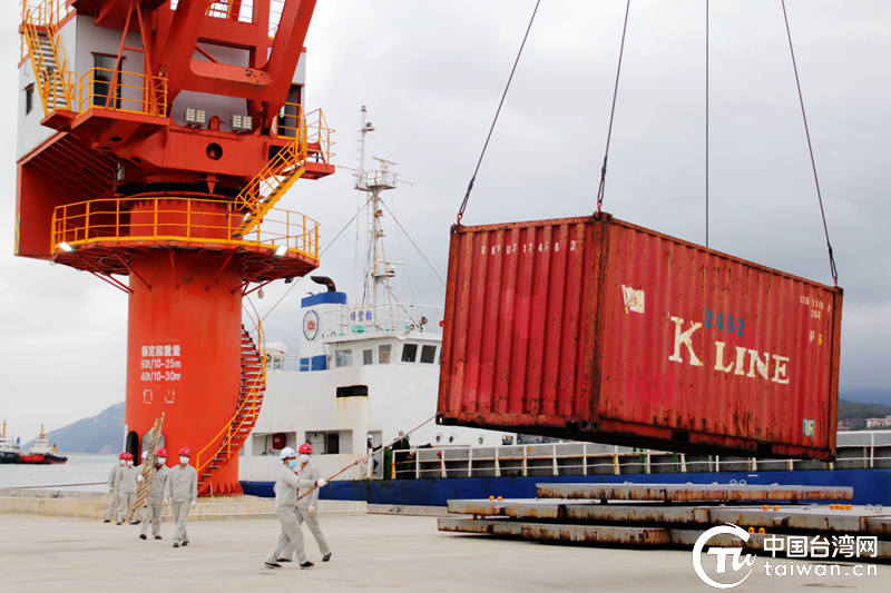 13個集裝箱由臺灣金門運(yùn)抵南澳前江碼頭。(中國臺灣網(wǎng)發(fā))
