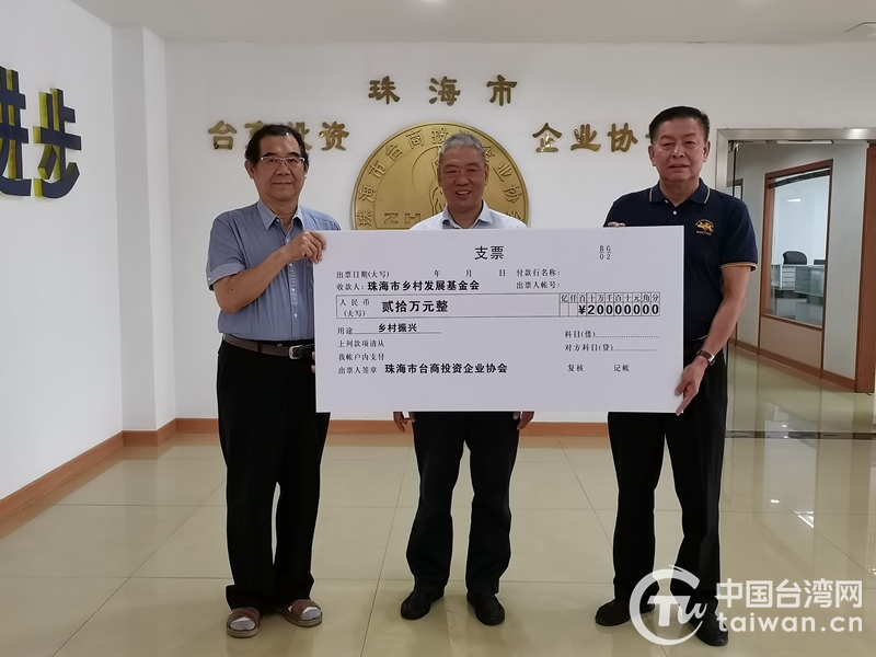 中國臺灣網7月5日訊 近日,珠海市臺商投資企業協會(以下簡稱“珠海市臺商協會”)舉行2023年“6·30”助力鄉村振興捐款儀式,向珠海市鄉村振興發展基金會捐款20萬元,為鄉村振興貢獻臺商力量。