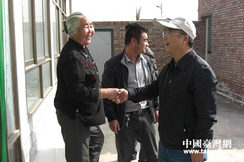 甘肅省臺(tái)辦主任趙少智在靖遠(yuǎn)縣劉川鄉(xiāng)慈濟(jì)大愛村,與村民親交談。