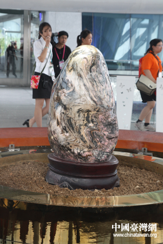 “點(diǎn)燈水臺(tái)”中心的花蓮玫瑰石。(中國(guó)臺(tái)灣網(wǎng) 肖燕 攝)